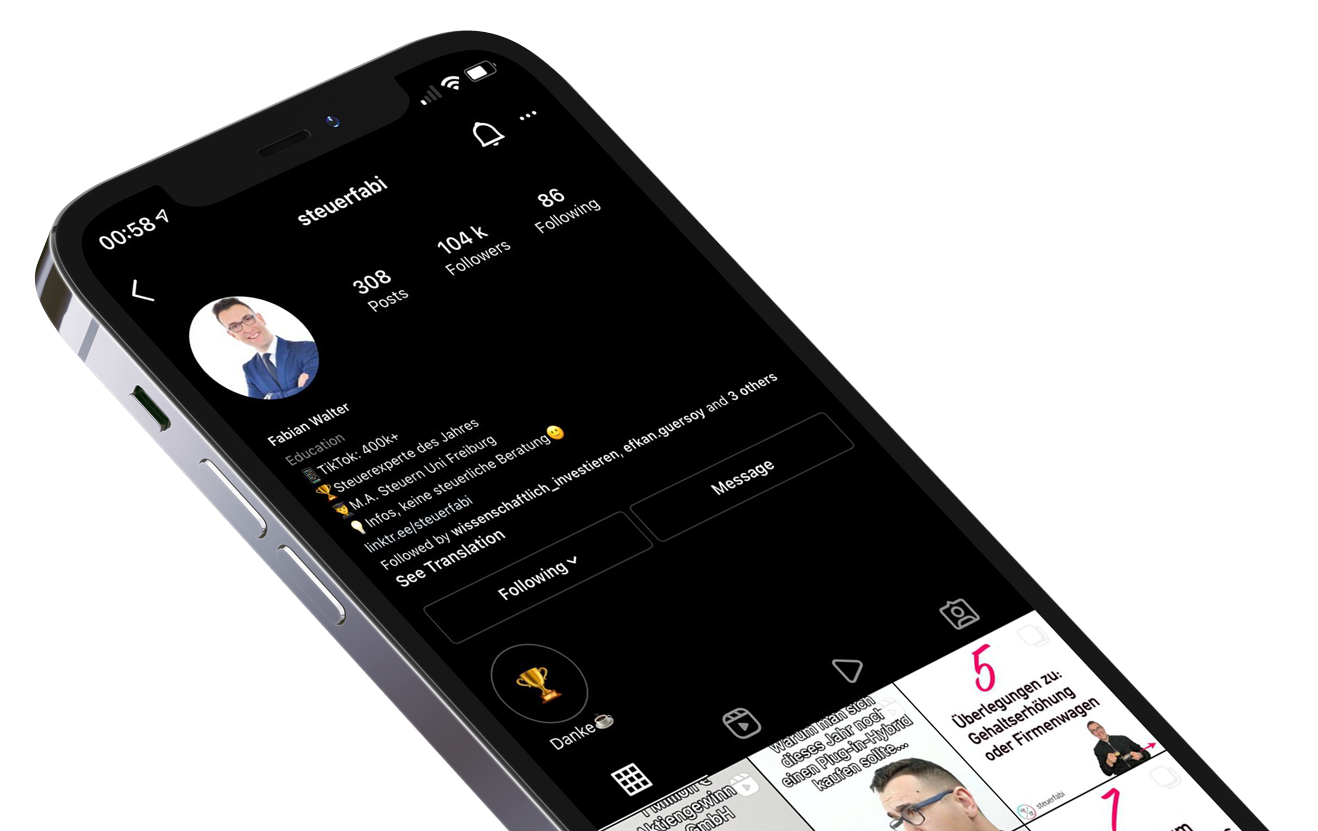 Sein erstes TikTok-Video im April 2020 erstellte Fabian Walter noch auf Drängen eines Studienkollegen. Inzwischen folgen dem längst als „Steuerfabi“ bekannten Simonswälder dort (aktuell) rund 575.000 Menschen. Tendenz rasant steigend! Fortan postete er täglich weitere Videos zu meist aktuellen Steuersachverhalten, die er humorvoll inszeniert. Mit Kompetenz und Kreativität schuf er so den inzwischen größten Social Media-Kanal für deutsches Steuerrecht.
